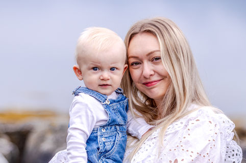 Denne unge familien valgte en spektakulær fjord som bakgrunn – et valg som passet stilen deres perfekt. Kledd i enkle hvittoner og myke blåfarger smeltet de harmonisk inn i de naturskjønne omgivelsene, og viste at både denne fargepaletten og en mer uformell stil kan være magisk for en fotoshoot. For ikke å snakke om den lille guttens nydelige blå øyne, som kronet hele blåtoneskalaen.
